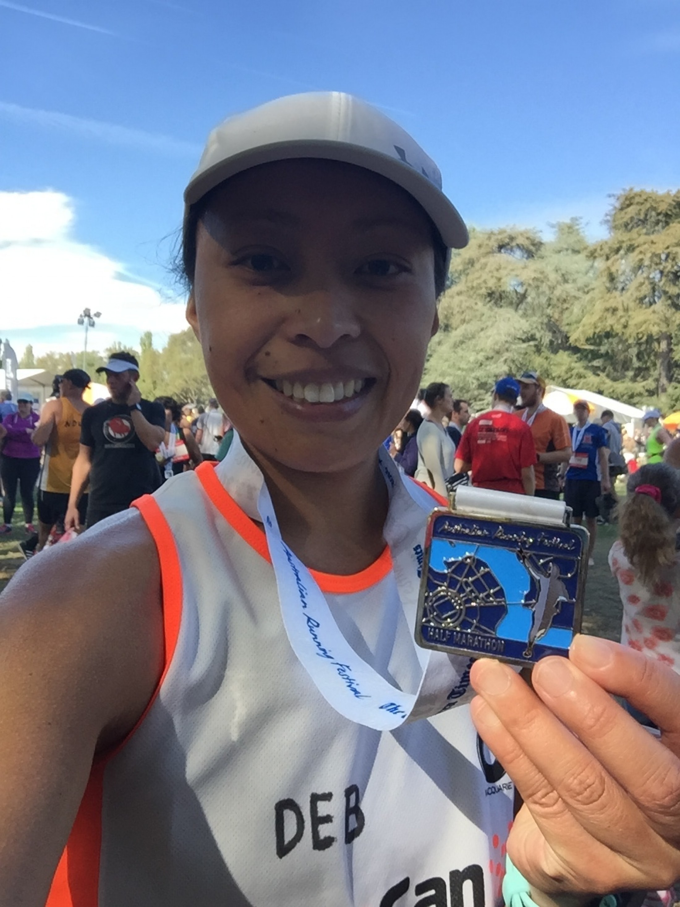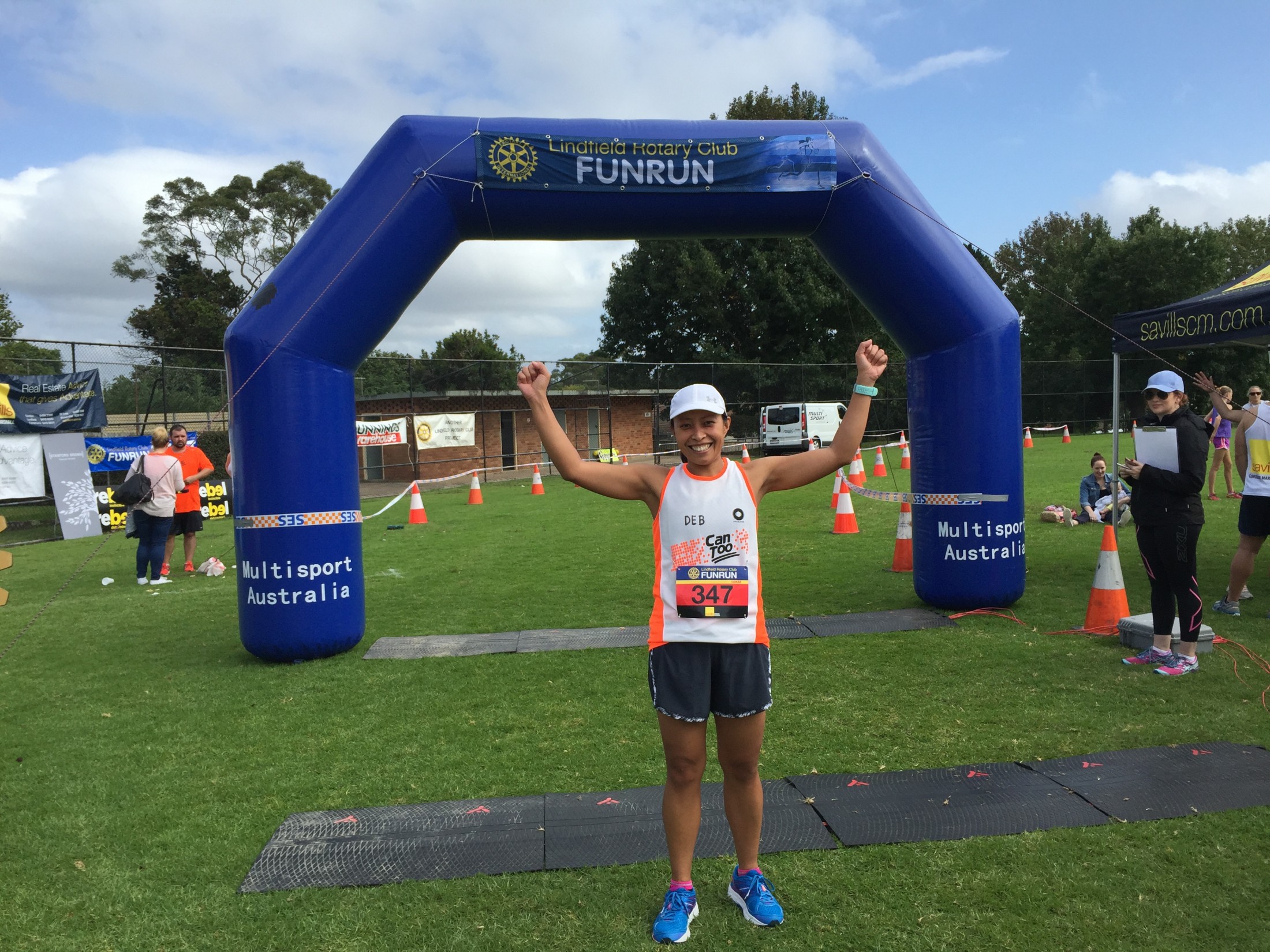 My legs felt like lead at the half way mark and it was probably due to going out too fast again. I was quite pleased with my time despite the challenging hilly run which means that the hard work in training is paying off and making me stronger and fitter. But the best part of the run was that there were so many Can Tooers in support, cheering fellow Can Tooers. As I have my name written on my training singlet, I was so rapt whenever people would shout out "Go Deb!"