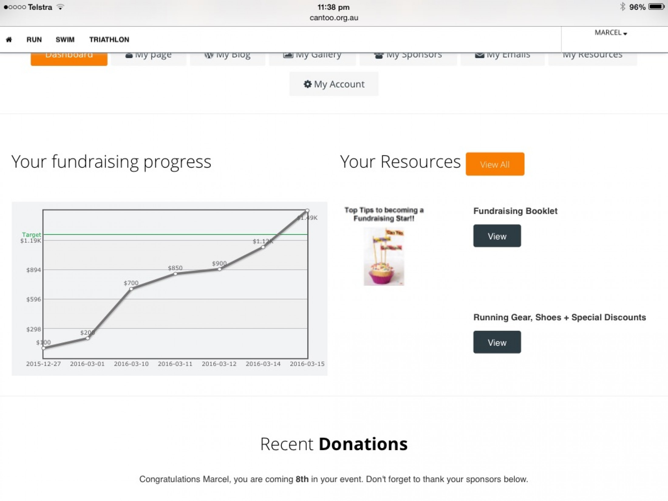 But then I received a few more of those lovely Can Too emails telling me I have more donations and when I logged in to my fundraising page I saw that